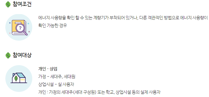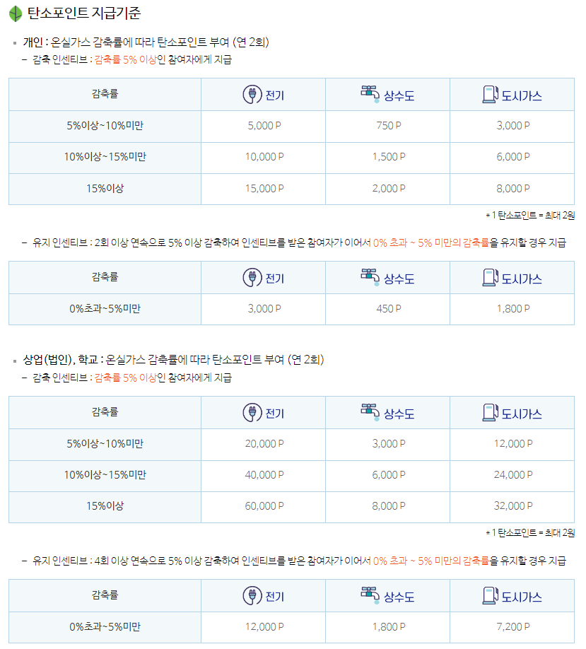 전기·수도·가스 감축 실적: 감축률에 따라 연간 최대 10만 원 상당 포인트 지급