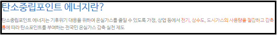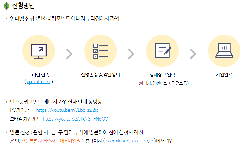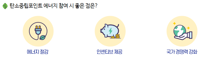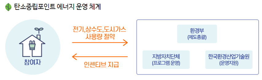 탄소중립 포인트제는 오늘 마신 커피 한 잔의 컵을 바꾸는 것으로, 자동차 운전 습관을 조금만 바꾸는 것으로, 그리고 매달 가정의 전기 사용을 조금 줄이는 것으로도 지구를 지키는 길에 동참할 수 있습니다.