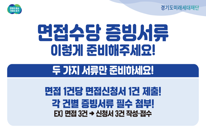 경기도 청년 면접수당 사업은 경기도에 거주 중인 18세 이상 39세 이하 청년을 대상으로, 취업 면접을 본 사실이 있는 경우 면접 1건당 5만 원, 최대 10회에 걸쳐 50만 원까지 지원해주는 구직 지원정책입니다.