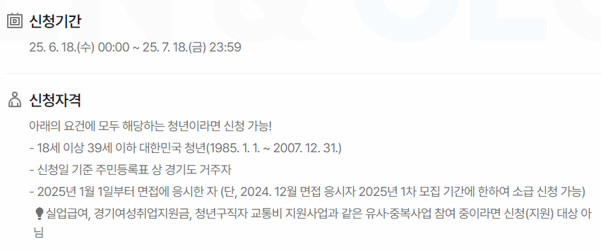 지원 대상: 경기도 거주 중인 만 18세 ~ 39세 청년